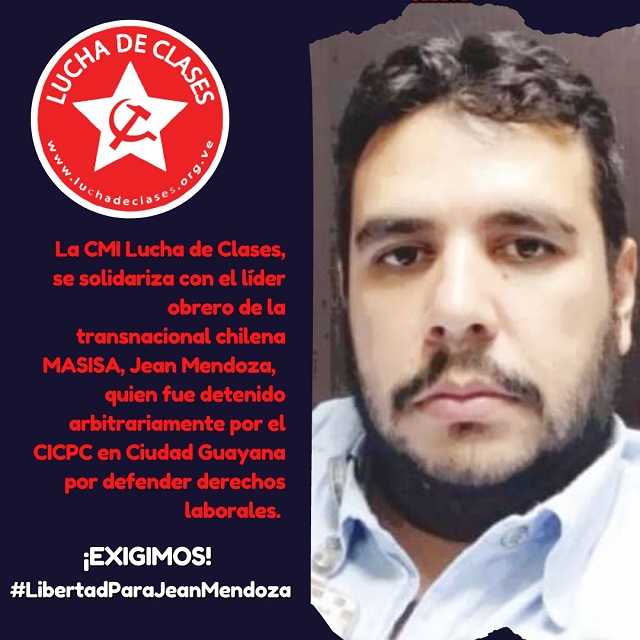 "Los militantes de la Corriente Marxista Internacional,sección venezolana, alzamos nuestra voz contra la arbitraria detención del dirigente obrero Jean Mendoza y exigimos su inmediata liberación. Basta de criminalizar la lucha obrera. Libertad para Jean Mendoza," afirmaron.