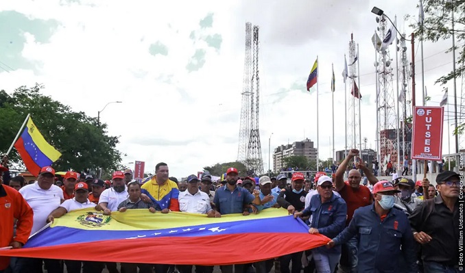 23 de marzo de 2023.- Trabajadores de las empresas básicas marcharon desde el Centro Total de Entretenimiento Cachamay hasta la sede de la Corporación Venezolana de Guayana (CVG), en Alta Vista, en el estado Bolívar, exigiendo se investiguen presuntos hechos de corrupción en el holding, se desprende de una nota de El Correo del Caroní.