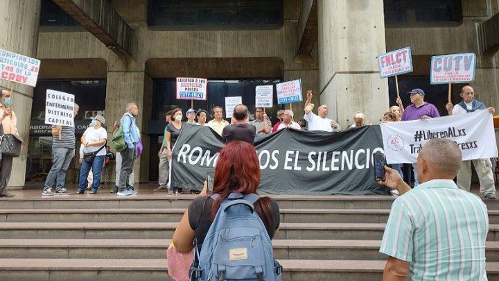Entonces, nosotros, ante la arbitrariedad del haber sido detenidos, de haber sido encarcelados, hoy estamos haciendo acto presencia para expresar esa solidaridad y reconocer como un acto justo lo que vienen realizando ellos, además, no solamente justo sino legal, constitucional, que es la lucha por el salario desde la perspectiva sindical.