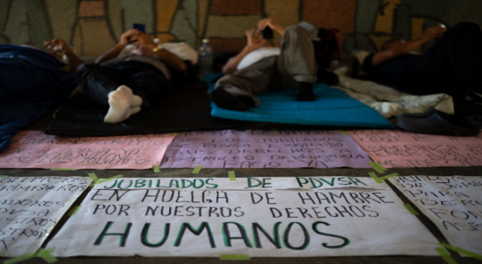 Por su parte, María de Viloria, miembro del Comité de Pensionados del Instituto Venezolano de los Seguros Sociales (IVSS), mostró su apoyo a los huelguistas de Pdvsa y recordó que esta lucha de los trabajadores, jubilados y pensionados del Seguro Social es de larga data.