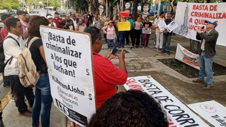 07-10-23.-El acto se realizó como parte de la campaña “Basta de criminalizar a quienes luchan. Los privados de libertad de la Clase Trabajadora son pobres e inocentes: Libertad para lxs trabajadorxs, luchadorxs, y mujeres”, y para visibilizar una muy dura e injusta realidad que afrontan la clase trabajadora en nuestro país. Son decenas de criminalizados solo por exigir salarios, cumplimiento de contrarios, por negarse o denunciar hechos de corrupción, e incluso, hasta simplemente por el hecho de ser pobres.