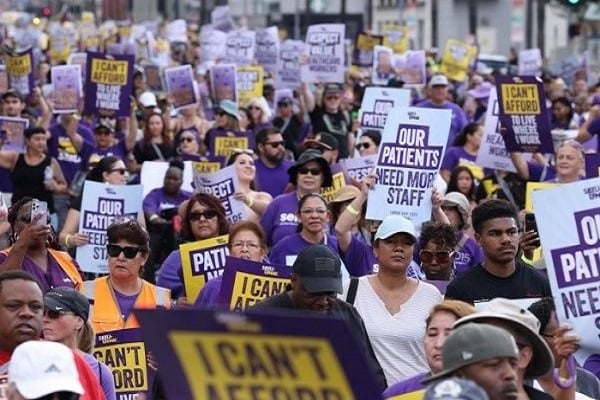 Los profesionales sanitarios de Kaiser y Tenet están siguiendo los pasos de 7.000 enfermeros, en dos importantes hospitales de la ciudad de Nueva York, que formaron piquetes a principios de año por demandas similares.