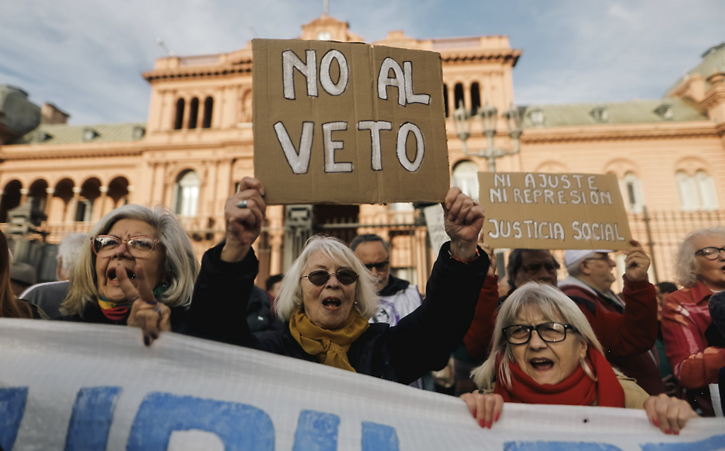El pasado miércoles, unos 2.500 jubilados marcharon desde el Congreso hacia la Casa Rosada (sede de Gobierno) para exigir que el presidente no vetara la ley, que además consideran no les otorgaba un aumento suficiente.
