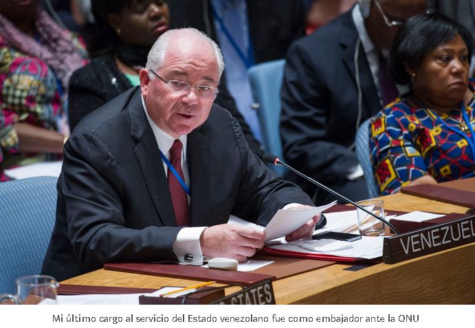 Cuando las diferencias con Maduro se hicieron evidentes, sobre todo al finalizar mi período como representante de Venezuela ante el Consejo de Seguridad, durante el 2015–2016, le expresé al vicepresidente de entonces, mi deseo de retornar al país. Me fue negado, al contrario, me ofrecieron enviarme a Ginebra, al frente de la Misión Venezolana ante la ONU, posibilidad que negué de plano.