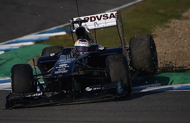 Madrid, febrero 11 - El piloto venezolano Pastor Maldonado chocó su monoplaza FW33 de la escudería británica AT&T Williams en la sesión de pruebas oficiales de pre-temporada de la Fórmula 1, efectuada este viernes en el circuito de Jerez de la Frontera, España.