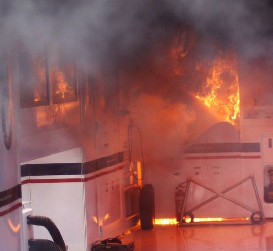 En cuestión de segundos, las nubes de humo negro ondearon por encima de los pits y la pista.
