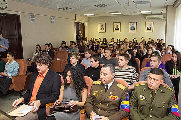 El propio Rector de la Academia de Administración, Anatoly N. Morozevich, realizó la apertura del acto frente a los estudiantes y los invitados, y el presentador fue el Vicerrector, Igor Ivanovich Goncharionok.