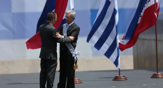 Vásquez recibió la banda presidencial que le confiere el cargo de Presidente de manos del saliente José "Pepe" Mujica.