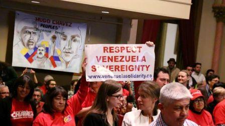 Antes de dar paso a las intervenciones del público, Denise Martins, de la Federación Mundial de Juventud Democrática, que agrupa organizaciones de jóvenes progresistas en todo el mundo, leyó un comunicado en apoyo a la Revolución Bolivariana y en rechazo al plan de golpe de Estado.