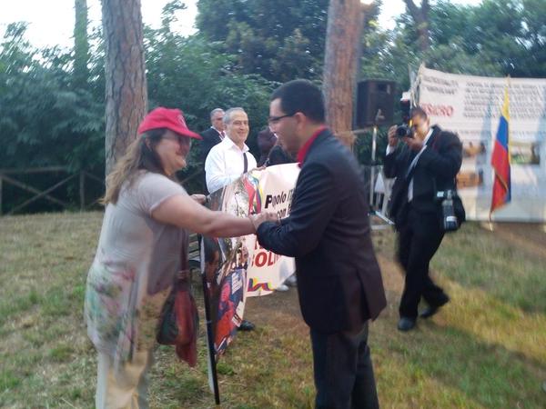 Roma, junio 8 - Este lunes el vicepresidente de la Republica Jorge Arreaza, se reunió con movimientos sociales, en el Monte Sacro, Roma, lugar donde Simón Bolívar juró liberar a Venezuela y América del yugo español, y en el cual recibió un proyecto para el reacondicionamiento y embellecimiento del espacio, de manos del Alcalde de la ciudad.