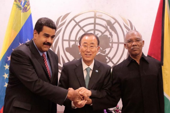 Nueva York, septiembre 27 - El presidente de la República, Nicolás Maduro, informó este domingo que la Secretaría General de la ONU activará una comisión técnica en el marco del Acuerdo de Ginebra, para resolver el diferendo territorial entre Venezuela y Guyana. Tras reunirse con su homólogo guyanés, David Granger, en la ciudad de Nueva York, el mandatario venezolano informó el regreso de los embajadores de Venezuela a la República Federativa de Guyana.