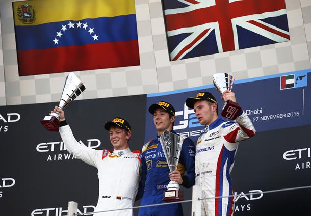 27 de noviembre de 2016.- El piloto venezolano Johnny Amadeus Cecotto se subió al podio del Grand Prix de Abu Dhabi de la GP2 Series, al culminar en la segunda posición.