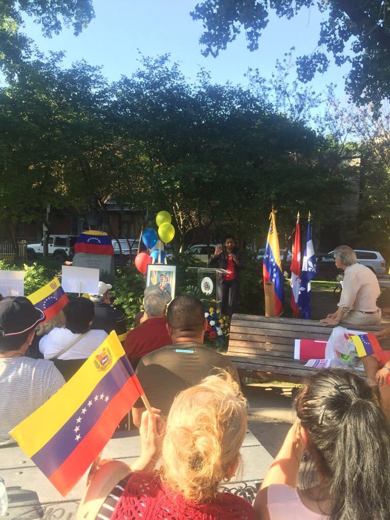 En la cultural ciudad de Montreal y su plaza Hector Toe Blake , se ornamentó en tricolor, honrando con merecido respeto al busto del Libertador Simón Bolívar, ofrendándole con un hermoso arreglo floral, a ambos lados, globos tricolor apuntando al cielo azul de esta cálida ciudad, las banderas de Canadá , Quebec y Venezuela fueron colocadas en orden protocolar, seguido del himno nacional de la República Bolivariana de Venezuela, interpretado en la voz de nuestro eterno líder Hugo Chávez, así mismo palabras de bienvenida de la Cónsul de Segunda, Esther Madrid, quien en nombre de la Cónsul General presidió la festividad patria, dando a los presentes un recorrido histórico de lo que fue 1811 y la firma del acta de la independencia, recordándoles que La independencia de Venezuela fue el proceso emancipador desarrollado entre 1810 y 1821 para romper los lazos coloniales que existían entre ese territorio y el Imperio Español.
