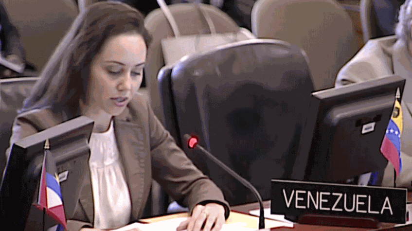 La representante de Venezuela, Carmen Luisa Velásquez, leyó un comunicado en nombre del Gobierno nacional, en el que se repudió las posibles sanciones económicas anunciadas por EEUU si se lleva a cabo el proceso de la Asamblea Nacional Constituyente (ANC), entre otros aspectos.