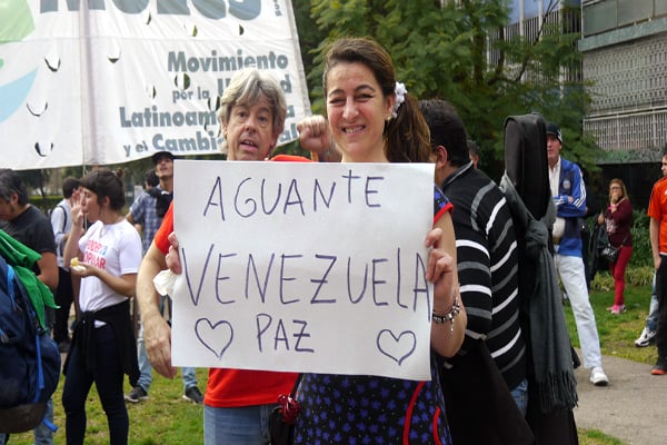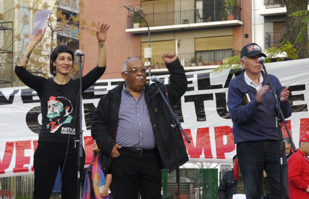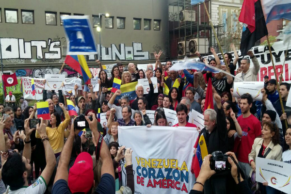 29 julio 2017 - Resumen Latinoamericano, 29 julio 2017.-Alrededor de un millar de manifestantes participaron en Buenos Aires en la tarde del sábado de un importante acto político-cultural de solidaridad con Venezuela Bolivariana y su votación por la Contituyente. La actividad fue organizada unitariamente por diversas organizaciones sociales y políticas que consensuaron un documento (ver en nota aparte) en el que se reivindica el respeto a la voluntad soberana del pueblo venezolano para ejercer su voto este domingo por una nueva Asamblea Constituyente y se repudia la violencia fascista practicada por la oposición y la presión injerencista del imperialismo y sus aliados, los gobiernos derechistas del continente y del mundo.