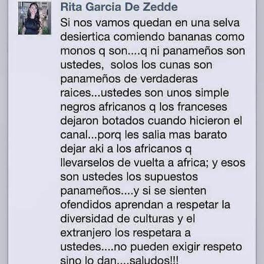 17 Feb. 2018 - Los comentarios emitidos por la venezolana Rita García en la red social Facebook, donde insultó y denigró a los panameños podrían haber ocasionado su deportación y expulsión del país. Precisamente porque la ley 13 de febrero del 2008 establece que la dirección de migración podrá expulsar del país a los extranjeros que inciten el odio racial, religioso, cultural, político o represente una amenaza para la seguridad colectiva, salubridad o de orden público.