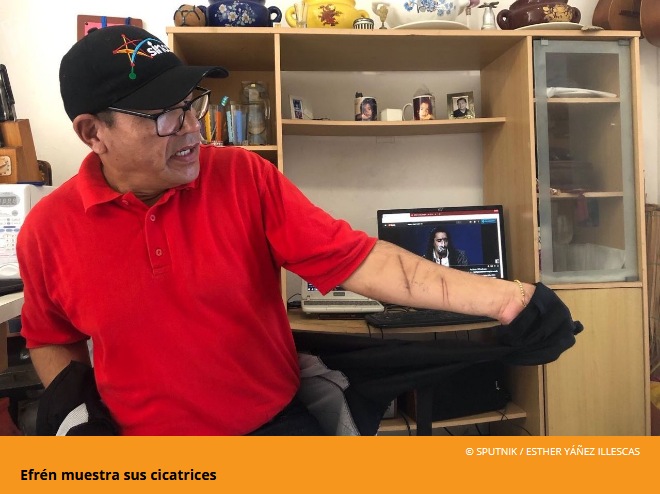 Efrén consiguió hablar con el embajador y le contó su caso. De inmediato le pusieron en la lista de pasajeros. Le dieron alojamiento durante tres días y el vuelo, finalmente, salió el miércoles. De esto hace pocas semanas pero su lustro y su psique son otros. Está cantando salsa, pone el Cigala en Youtube y juega a la pelota con su perro mientras responde a las preguntas de esta entrevista.