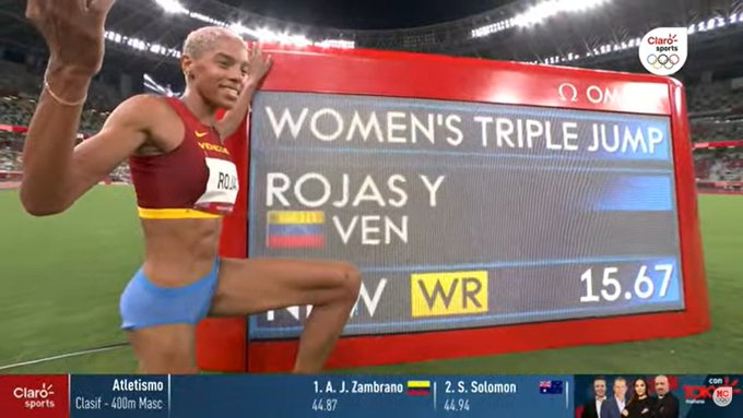 La atleta venezolana Yulimar Rojas acaba de romper record olímpico y mundial, en Triple Salto Femenino, consiguiendo subir al podium para colgarse la medalla de oro en las Olimpiadas de Tokio 2020.