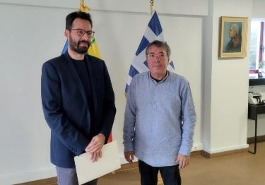 26 de mayo de 2023.- Una delegación del Partido Comunista de Grecia (KKE), encabezada por Lefteris Nikolaou-Alavanos, eurodiputado del KKE, y Aris Evangelidis, miembro de la Sección de Relaciones Internacionales del CC del KKE, visitó el viernes 26/5, la embajada de Venezuela en Atenas y se reunió con el Encargado de Negocios Freddy Jesús Fernández Torres, con el fin de entregar una carta de protesta al gobierno venezolano condenando la intensificación del ataque anticomunista contra el Partido Comunista de Venezuela.