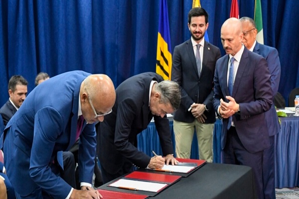 Jorge Rodríguez y Gerardo Blyde firman el acuerdo en Barbados
