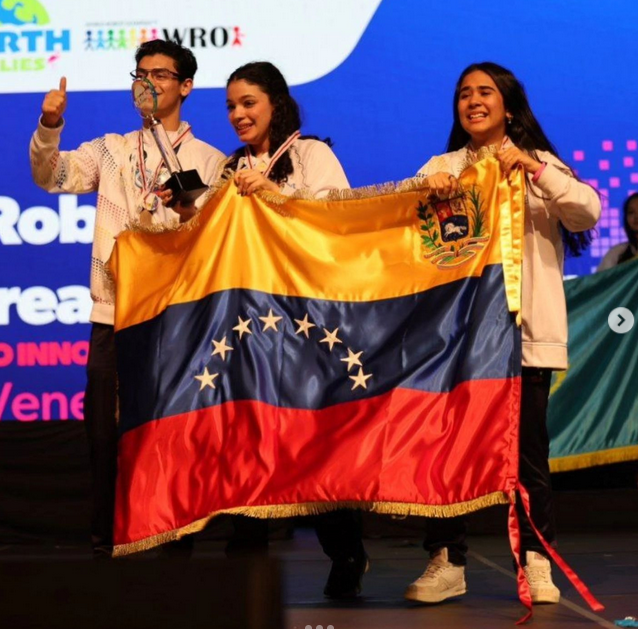 30 de noviembre de 2024.- La delegación venezolana del Programa Nacional Semillero Científico, conquistó este sábado el primer lugar en la categoría Futuros Innovadores Senior en la Olimpiada Mundial de Robótica, que se celebró en la provincia de Esmirna, Türkiye, informó la ministra de Ciencia y Tecnología, Gabriela Jiménez en sus redes sociales.