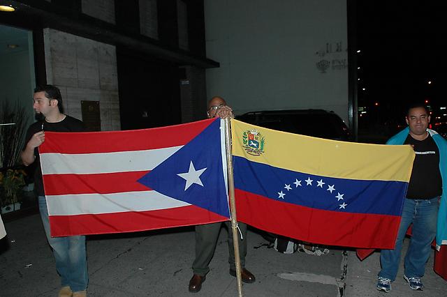 Activistas de la comunidad puertorriqueña del Bronx, que conmemoraban el día de ayer el Grito de Lares y el vil asesinato del dirigente revolucionario puertorriqueño Filiberto Ojeda Ríos, se dirigieron con sus banderas a la Misión venezolana ante las naciones unidas a dar su apoyo al Canciller “íbamos saliendo para el aeropuerto y estamos aquí para apoyar al Canciller Maduro y al pueblo de Venezuela” declaró el conocido luchador social puertorriqueño Vicente “Panamá” Alba a las cámaras, al tiempo que diplomáticos venezolanos agradecían su presencia.