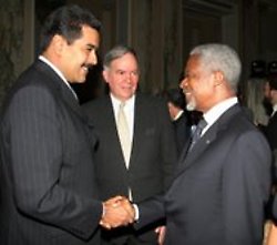 Nicolás Maduro Moros, recién nombrado Canciller de la República Bolivariana de Venezuela, llega a su puesto en momentos en que Venezuela intensifica su agenda de política exterior y se encuentra enfrascada en una batalla por lograr un puesto no permanente en el Consejo de Seguridad de las Naciones Unidas.
