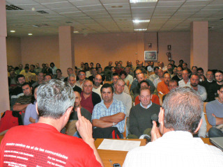 Gonzalo Gómez Freire, miembro co-fundador de Aporrea.org y de la coordinación de Asociación de Medios Comunitarios (ANMCLA), también activista de la Correiente Clasista Unitaria Revolucionaria y Autónoma (C-CURA) de la Unión nacional de Trabajadores (UNT) y militante del Partido Revolución y Socialismo (PRS) intervino como expositor invitado en una Asamblea de delegados y Trabajadores del Metal en Vigo (Galicia, Estado Español) el 23 de noviembre de 2006.